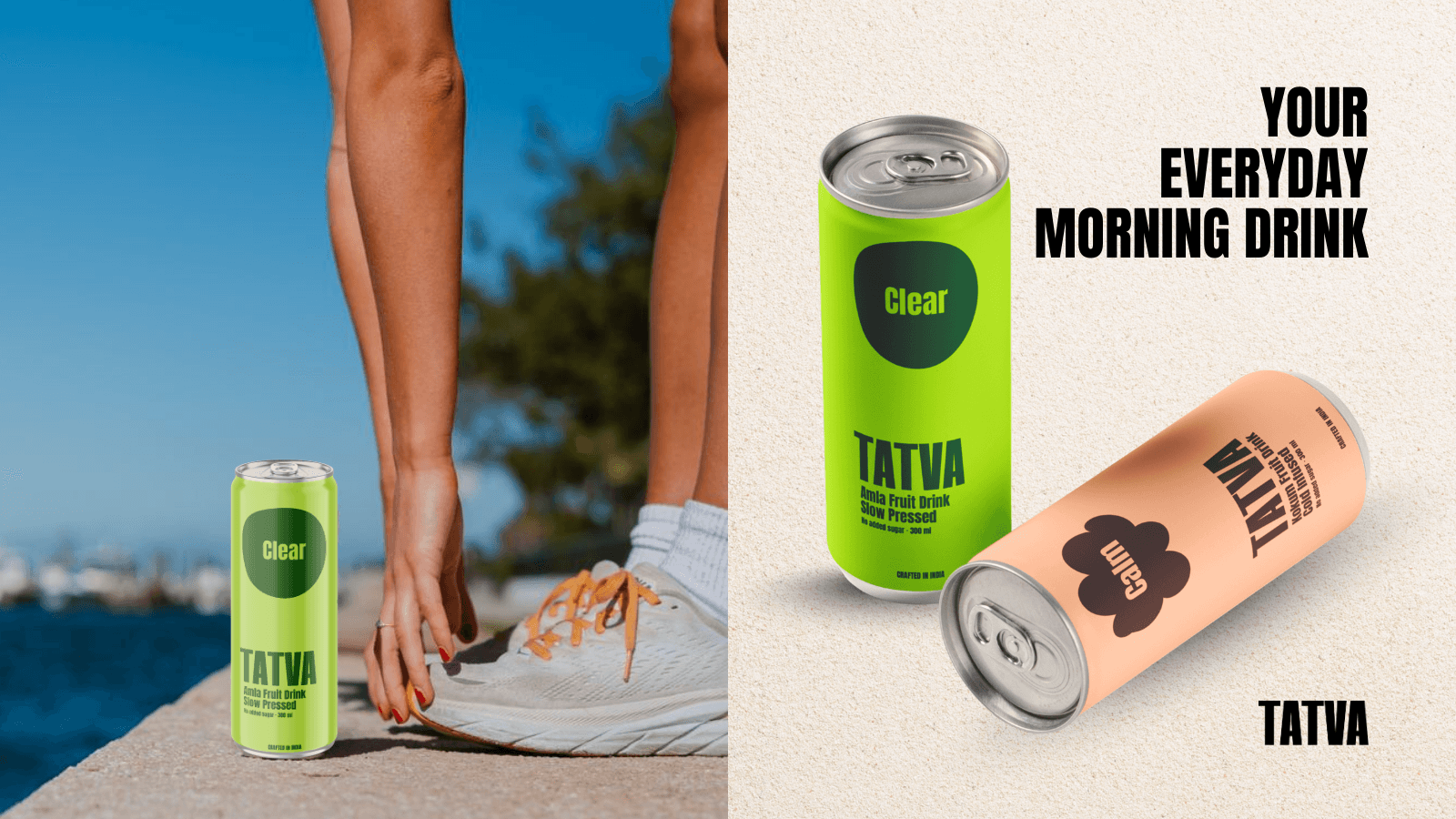 A vibrant functional beverage brand designed to translate emotions into everyday rituals. “TATVA” brings clarity and calm into a bold, modern packaging system that stands out and connects instantly.